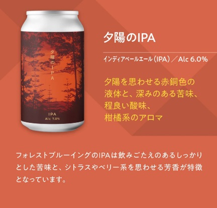 フォレストブルーイングのIPAは飲みごたえのある苦味と、シトラスやベリー系を思わせる芳香が特徴となっています。