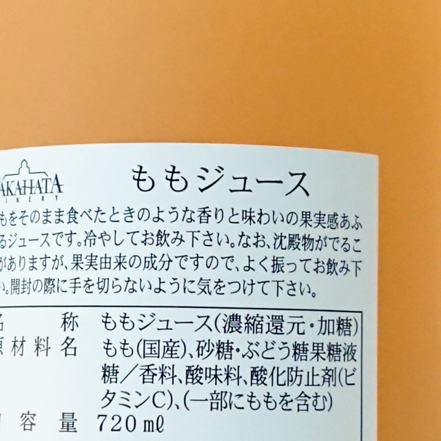- もも・果糖ぶどう糖液糖・香料・酸味料・酸化防止剤(ビタミンC)